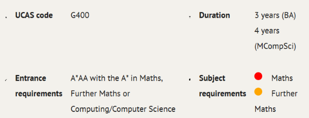 成绩要求:A*AA。数学/进阶数学/计算机/计算机科学达到A*