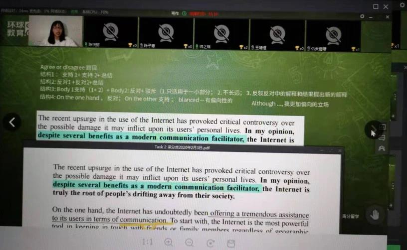课后,老师会布置相对应的练习,每个都监督到位,私发作业给老师,老师给批改,指出问题所在。我个人觉得在线学习最重要的是自觉性。在家,上课性对于在班级里上课,家里的环境会更舒适,再加上可能外在的干扰比较多,这时候就需要保持自觉性,约束自己的行为,保证上课不受外界的干扰,也是对自己自觉性的一大考验。