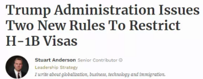 以美国为例,特朗普政府最近又发布了两项严格限制H-1B签证的新规。