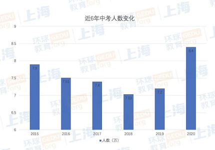 2020年上海中考人数定格在8.4万人,创下近6年新高,而2019年的数据则是7.2万,足足比前一年增加了1.2万!今年更有可能达到9万人!