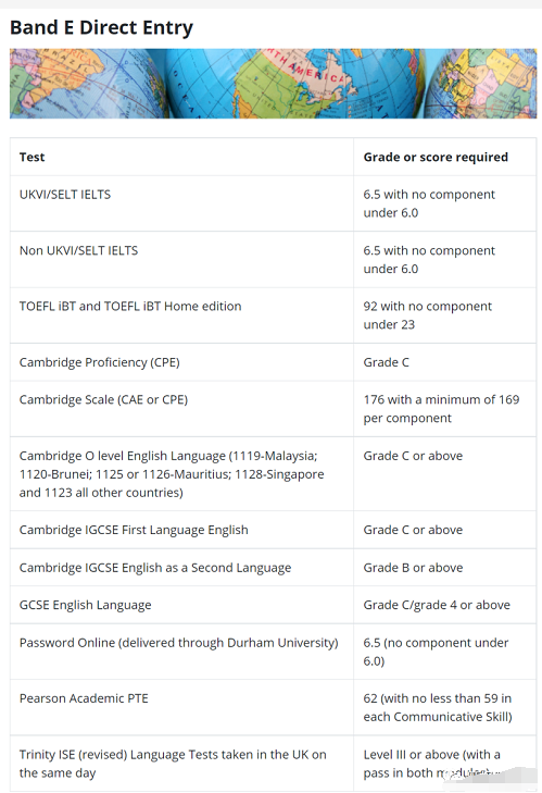 判断学校到底好不好,我一般最先看的是它的语言条件再看他的学术要求,我们来看看杜伦的语言条件吧。不同专业的语言要求略不相同,一般理工科的要求会低一些,找个热门的专业看看: