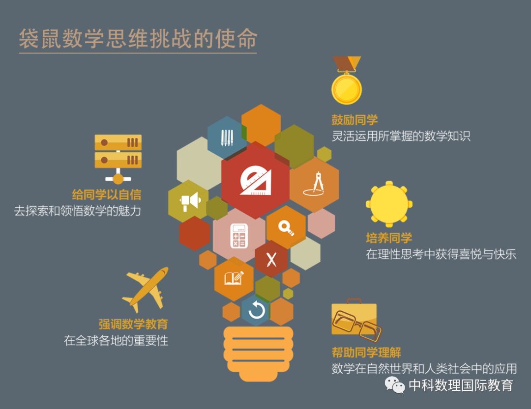 *注:“Math Kangaroo”原名“袋鼠数学竞赛”,根据教育部办公厅《关于面向中小学生的全国性竞赛活动管理办法(试行)》的通知以及教育主管部门的要求,现改名为“袋鼠数学思维挑战”。该学术挑战活动不与任何中国的大学、中学或小学升学加分活动挂钩,其成绩不会作为任何中国中小学升学或评优的依据,仅定位为针对中小学数学爱好者的课外兴趣活动和国际数学教学交流活动。