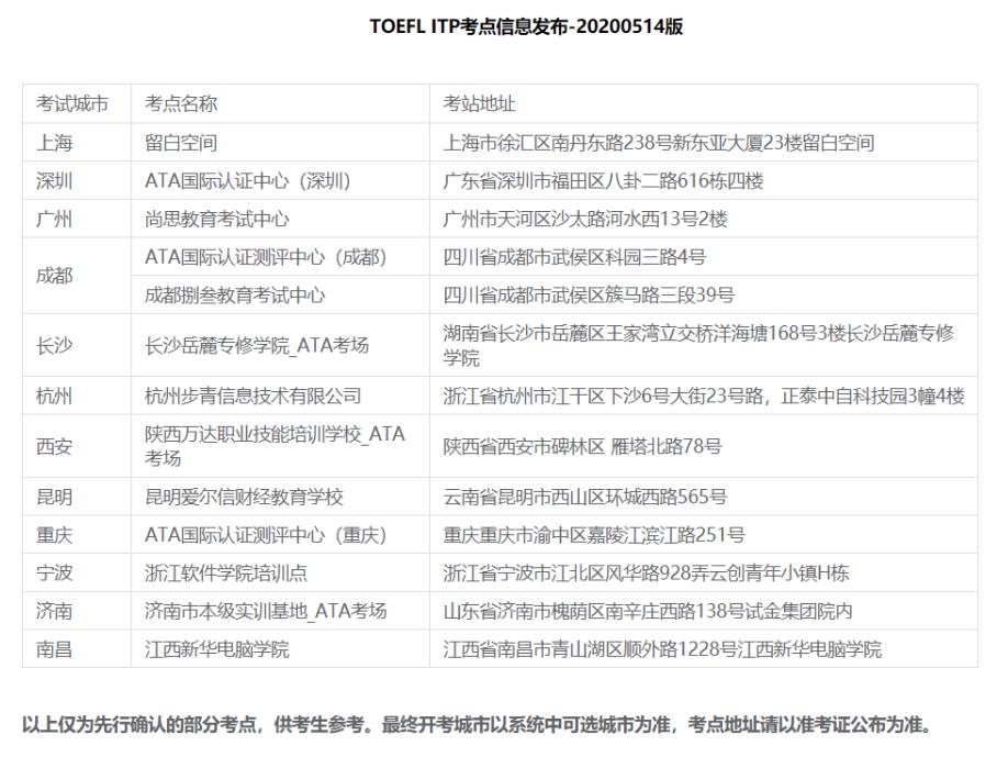 TOEFL ITP考试日期确定,考点有哪些呢?TOEFL ITP考点信息发布!