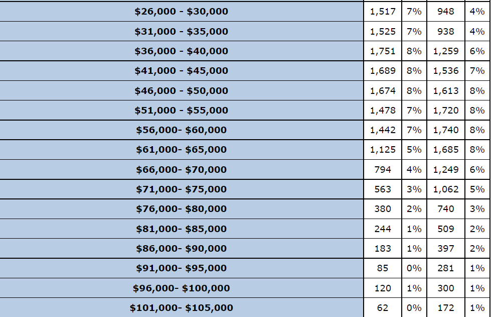 就大家最关心的毕业后工资而言,在学生从大学毕业六个月后,最常见的工资水准集中于年薪$36000到50000$。