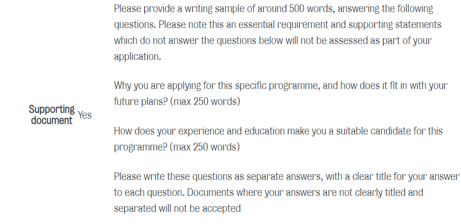 在这部分的表格中,我们需要你提交一份300 - 500个单词的支持性陈述,以证明你对该主题的理解以及你想在曼彻斯特大学学习这门课程的动机。